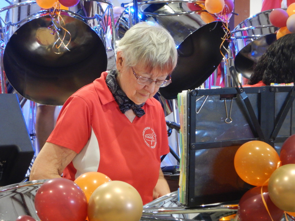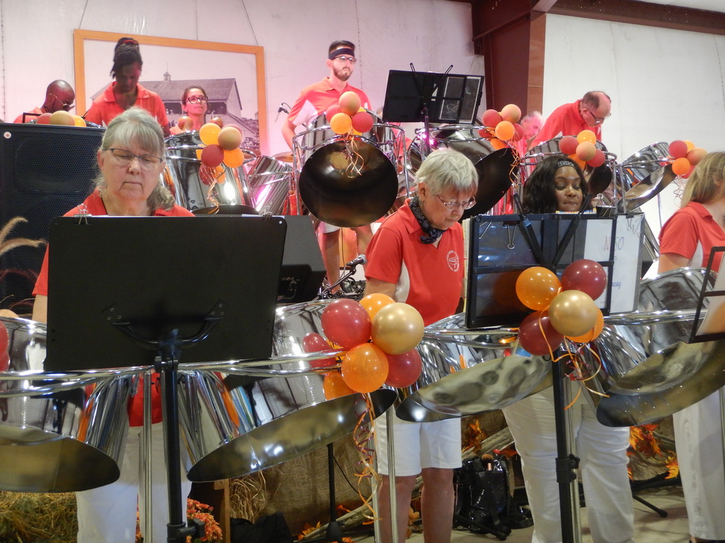 September, 2024 The performance at the Bracebridge Fall Fair was the last of the year for the Northern Lights Steel Orchestra. We got there early & chatted with many of the members. Thanks guys. I noticed that it seemed a bigger audience than usual. Now we wait for nine months for more. All the photos & videos were taken from my seat. Unable to walk with the walker, it makes blurred photos. Note: Some NLSO videos have been put on YouTube. They are all together on this web page to make it easier to find them. |